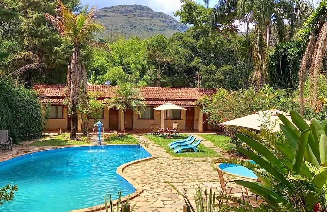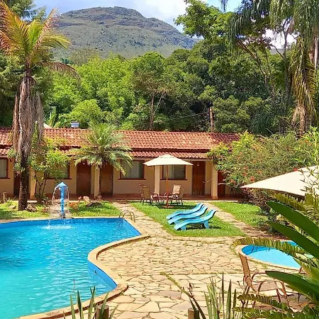 El Pousada Estalagem Moeda Real ofrece vistas a la piscina, un patio y una piscina.